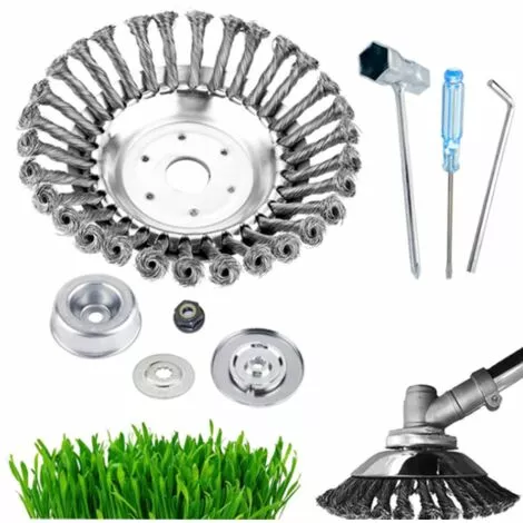 - Bords de roue audacieux et élargis, résistance à l’usure durable, rapide et efficace pour éliminer la saleté, la rouille, le désherbage et la mousse ! La conception du trou de positionnement du fil d’acier empêche le fil d’acier de se déplacer pendant l’utilisation
