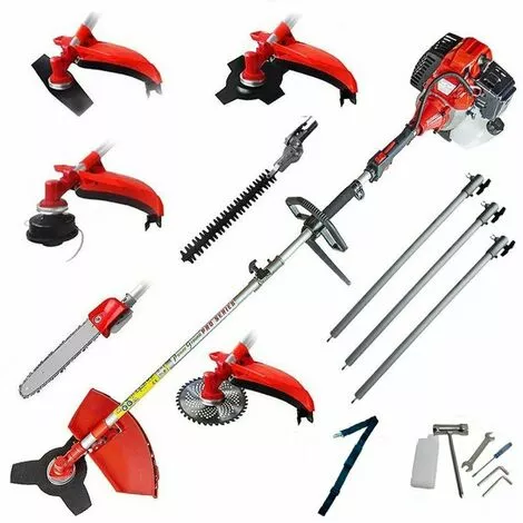 Quant à sa fonctionnalité, c’est une machine tellement pratique qu’elle vous permettra d’effectuer tout type de tâche. On peut tailler les haies du jardin avec son taille-haie de 44cm, couper aussi les branches avec l’élagueuse de 25cm, ou encore débroussailler les terrains avec l’un de ses 4 disques en acier et son rotofil renforcé.