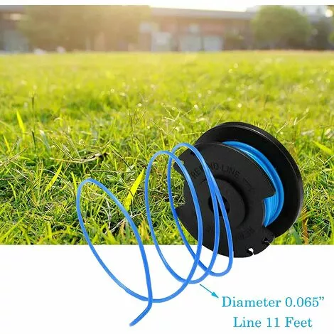 Taille: diamètre de la bobine du coupe-herbe sans fil de 0,065 pouce pour s’adapter parfaitement au trou de la ligne. La longueur du fil de bobine de 11 pieds offre une plus large gamme de tonte.