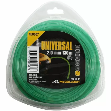Ligne de coupe Universal – Accessoire d’origine de qualité McCulloch éprouvée : Le fil de nylon Universal est idéal pour tailler le gazon et les broussailles en toute tranquillité. Grâce à une technologie brevetée, les pousses, les chardons et même l’herbe dure sont coupés proprement et, surtout, sans bruit. Le fil de coupe est en nylon résistant et durable.