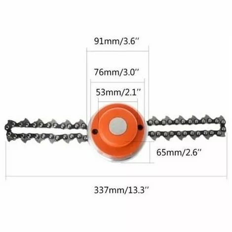 65Mn Tête de coupe avec Sawchain, Universal Fit M10 x 1,25 mm filet à gauche à la main.